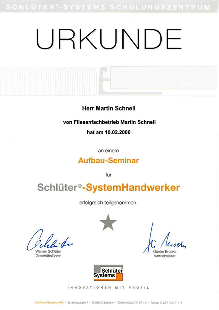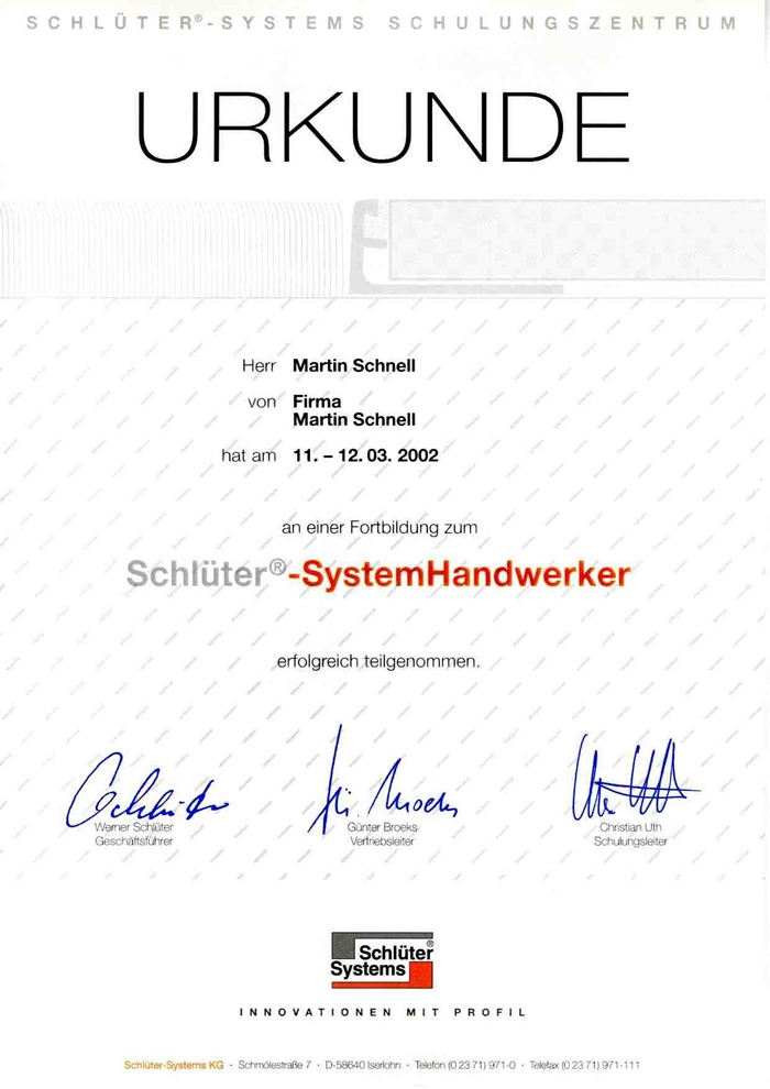 Wir sind geprüfte Schlüter-System-Handwerker!